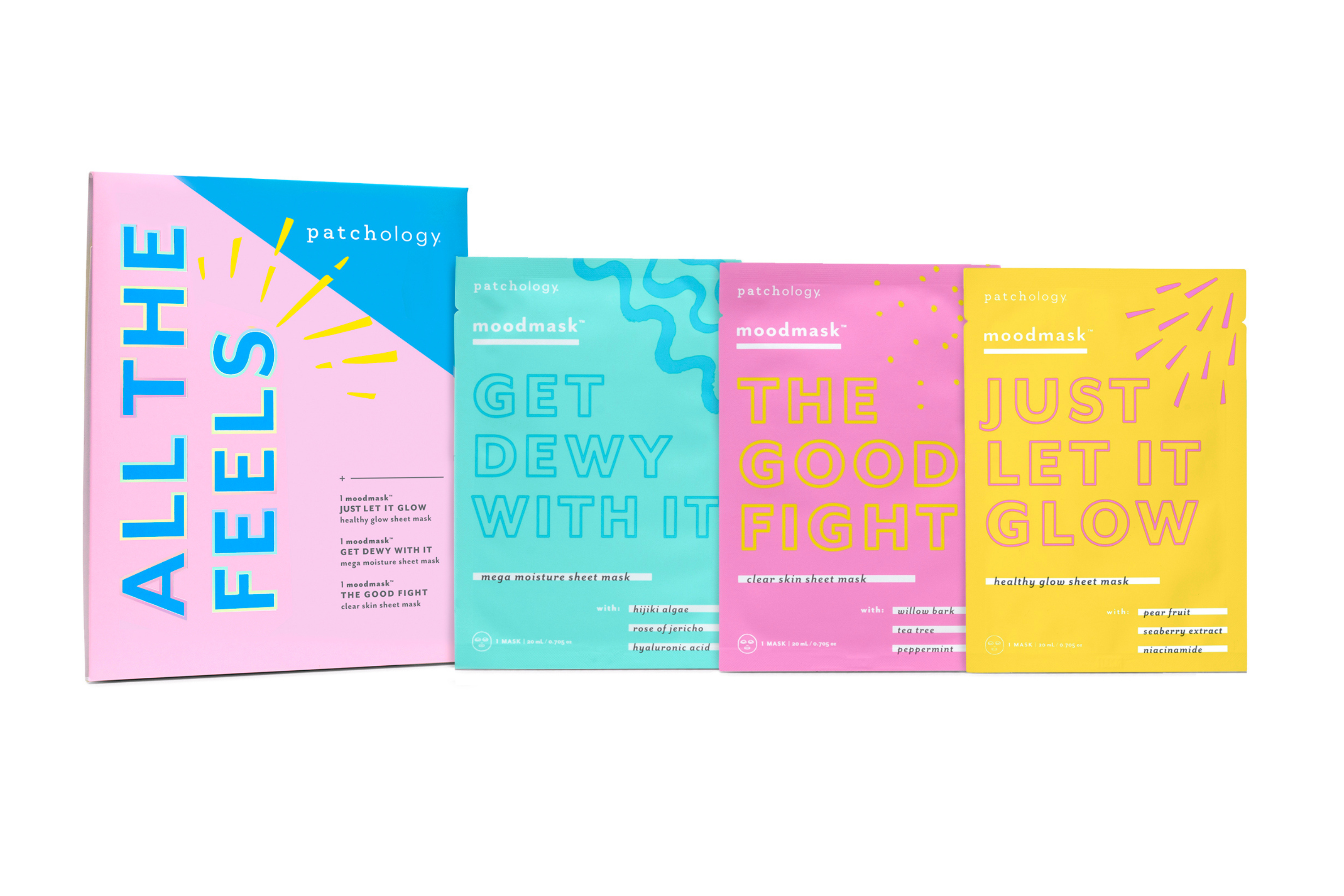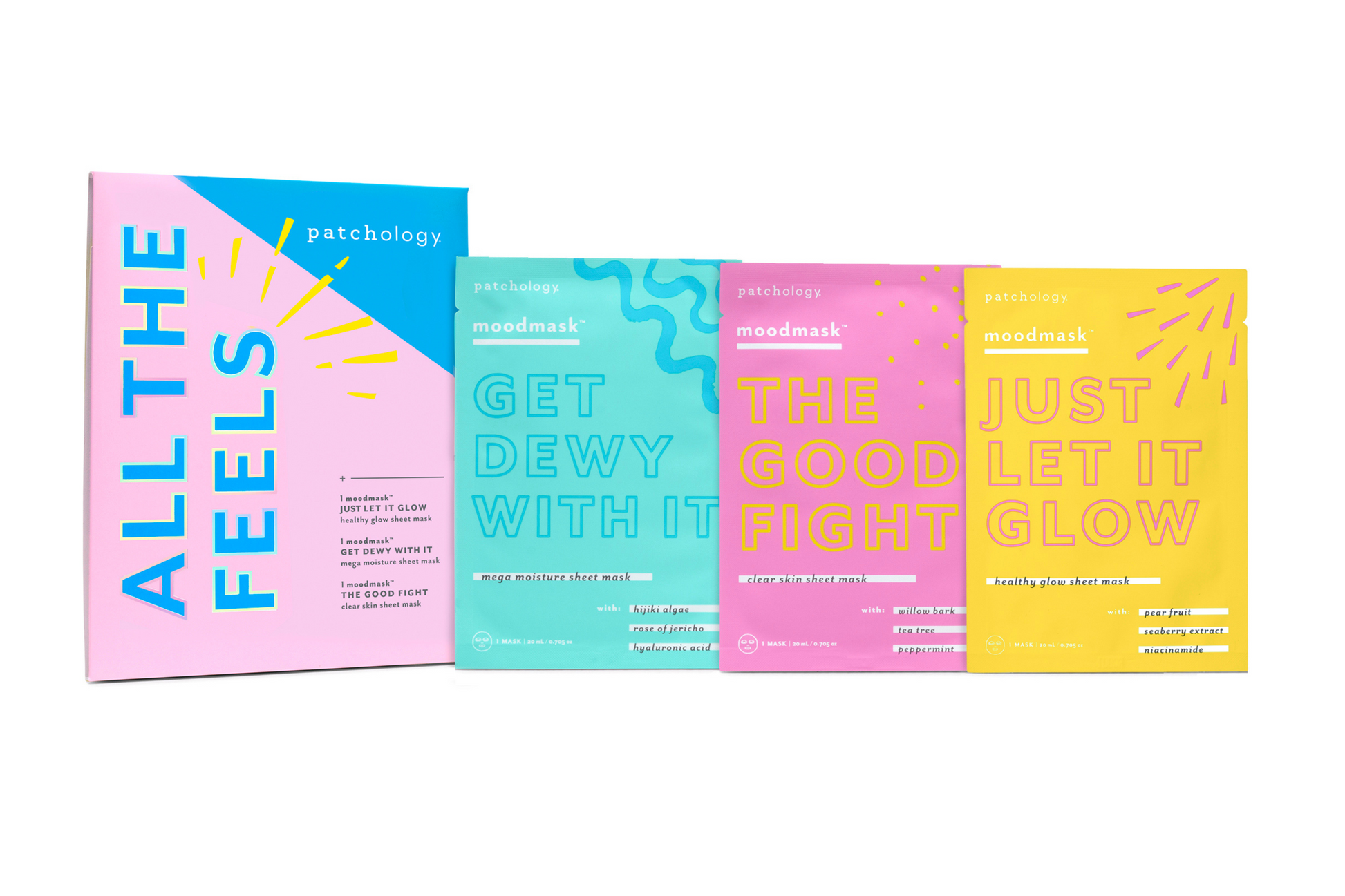 Patchology All The Feels Kit (mood mask kit) "Sheet Faced: Unleash Your Inner Glow" Indulge in the ultimate at-home spa experience with the All The Feels Sheet Mask Kit. This kit includes three moodmask™ facial sheet masks: The Good Fight, Just Let It Glow, and Get Dewy With It. Each mask is formulated with powerful ingredients that will leave your skin feeling clear, revitalized, and glowing.