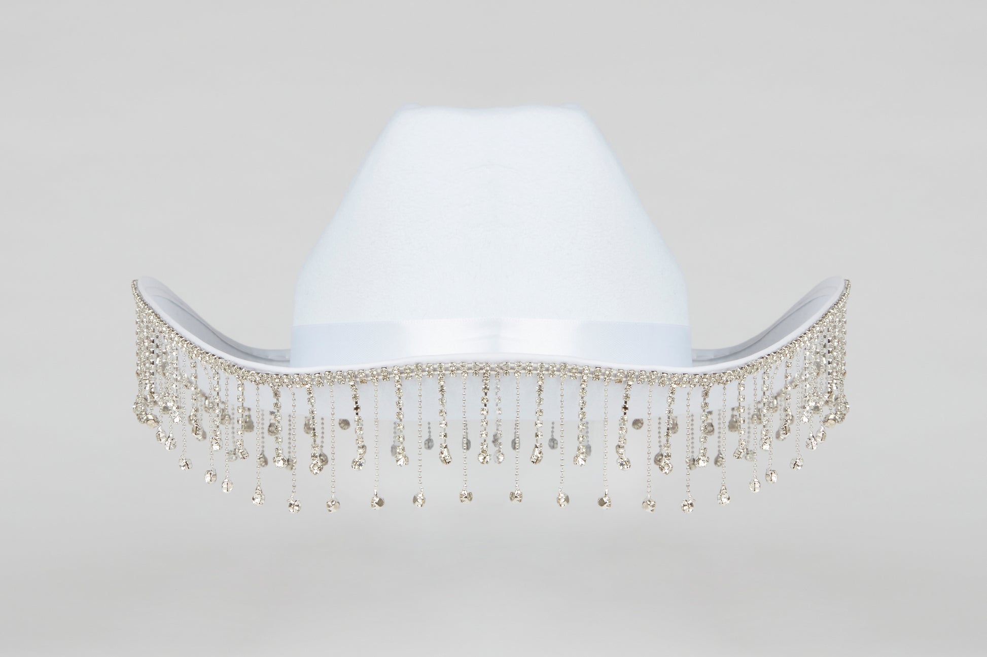 White, classic and with a dropped diamante hem, this hat gives all the sass, so showcase your wild side and embrace your inner cowgirl because tonight, it's all about you!!!