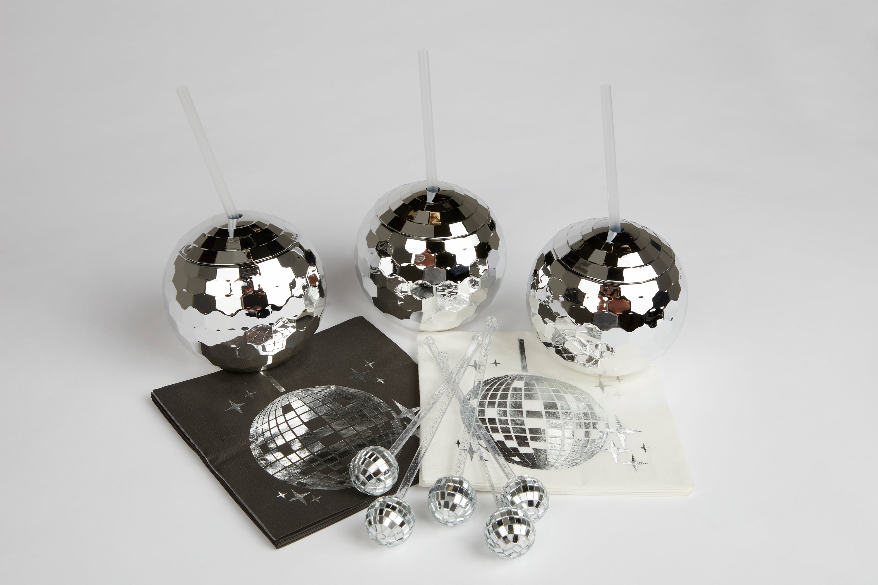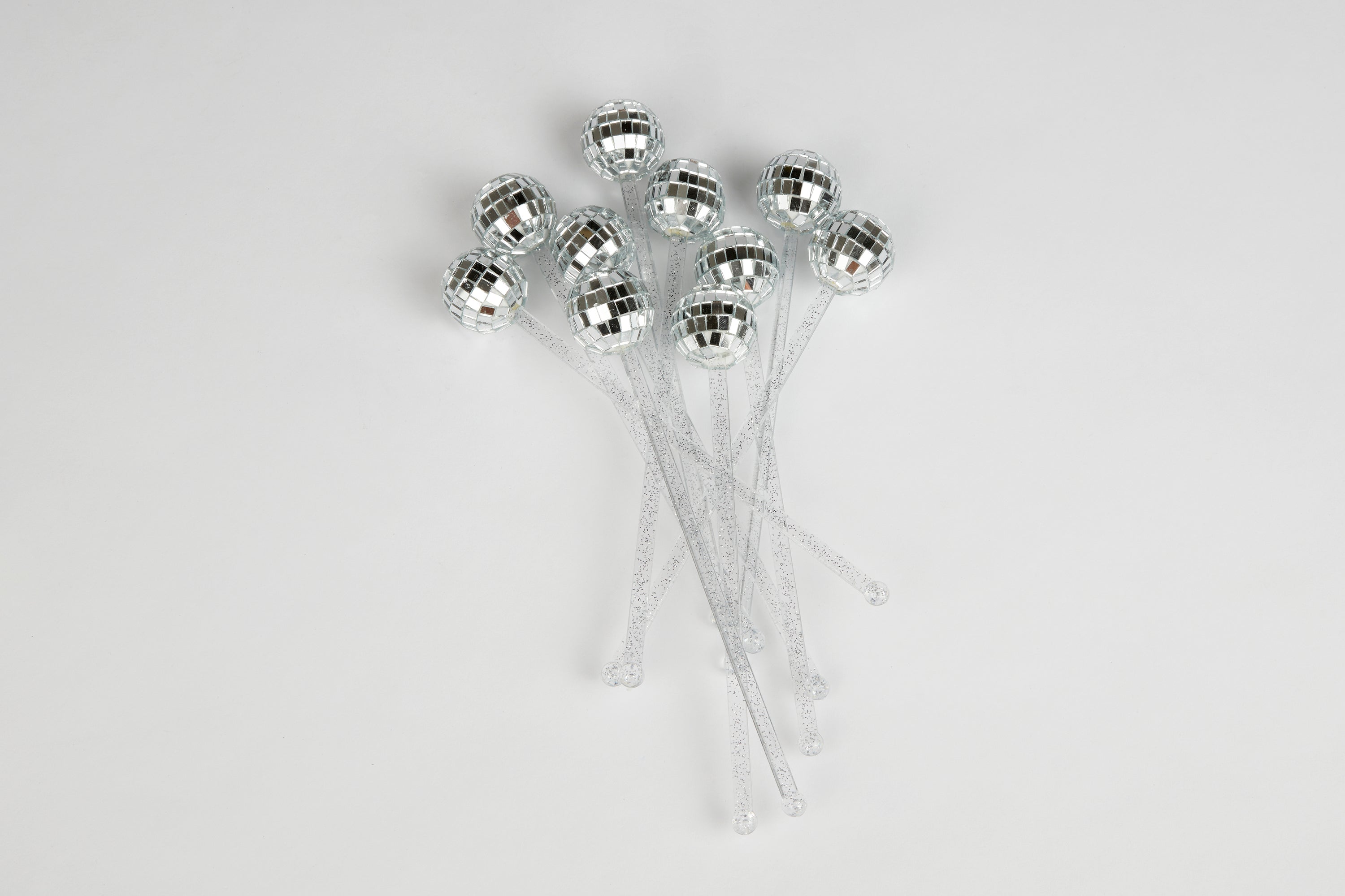 Disco Ball drink stirrers, Silver Mirror Ball drink stirrers, Disco Reusable Plastic drink stirrers